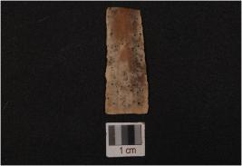 | Description / विवरण | A blade made on chert has prepared platform double ridge on dorsal, and use wear marks on the cutting edges. |