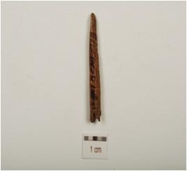 | Description / विवरण | A fragment of bonepoint ,with broken tip and smooth surface and circular cross-section. |