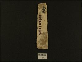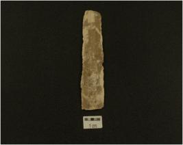 | Description / विवरण | A blade made on chert mid ridge on dorsal side, diffused bulb on ventral side and use wear marks on edge. |