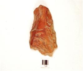 | Description / विवरण | A scraper made on chert, prepared platform, prominent bulb on ventral and irregular retouched edges. |