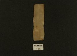 | Description / विवरण | A blade made on chert single ridge on dorsal side diffused bulb on ventral side and use wear marks on edges. |