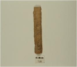 | Description / विवरण | A blade made of chert mid ridge on dorsal side, diffused bulb on ventral side and irregular retouching marks on edges. |