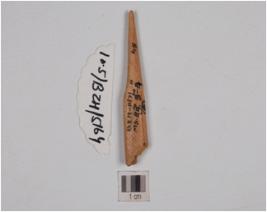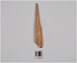 | Description / विवरण | Fragment of a bone point, broken at one end, pointed tip, rectangular cross-section and well polished. |