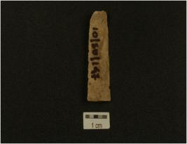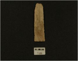 | Description / विवरण | A blade made on chert, single ridge on dorsal side, diffused bulb on ventral side and use wear marks on edge. |