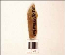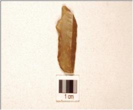 | Description / विवरण | A chert blade, prepared platform, and irregular retouched edge. |