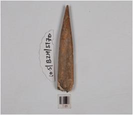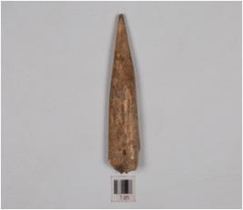 | Description / विवरण | Fragment of a arrow head made of bone, broken at one end, pointed tip and well polished. |