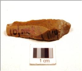 | Description / विवरण | A Blade made on chert prepared platform, prominent bulb on ventral ridge on dorsal, trinagular cross-section and sue wear marks along the cutting edge. |