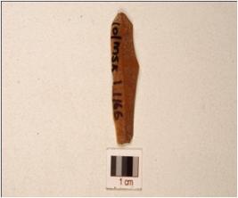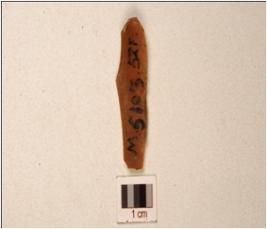 | Description / विवरण | A Blade made on chert, prepared platform, prominent bulb on ventral, triangular cross section and use wear marks along the cutting edge. |