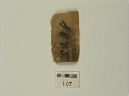 | Description / विवरण | A blade made of chert mid ridge on dorsal side, diffused bulb on ventral side and use wear marks on edges. |