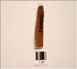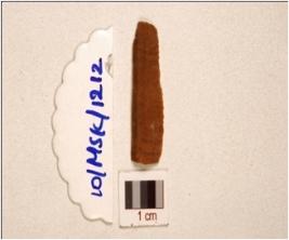 | Description / विवरण | A chert balde, double ridge on dorsal, trapezoid cross-section and use wear marks on cutting edge. |