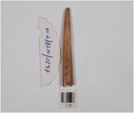 | Description / विवरण | Fragment a point made of bone, oval cross section, tip is broken and partly polished surface. |