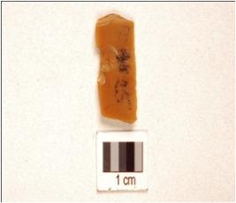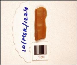 | Description / विवरण | A parallel sided chert blade, double ridge on dorsal, trapezoidel cross section, use wear marks on cutting edge and broken along both ends. |