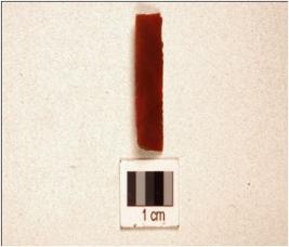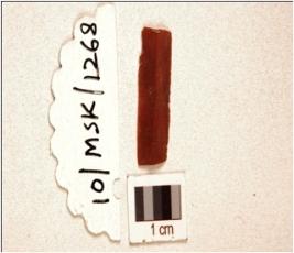 | Description / विवरण | Fragment of a blade made on chert, having two ridges on dorsal, trapezoidal cross-section and use-marks along the cutting edges. |