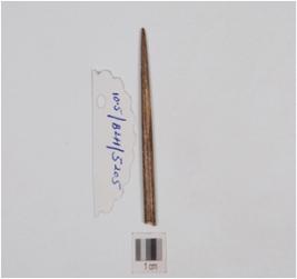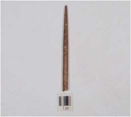 | Description / विवरण | A point made of bone, plano convex cross section and polished surface. |