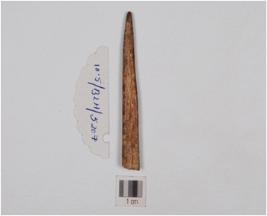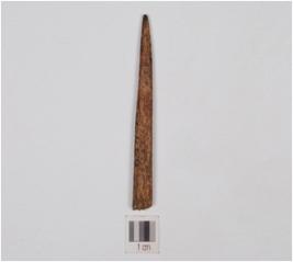 | Description / विवरण | A point made of bone, rectangular cross section and partly polished surface. |