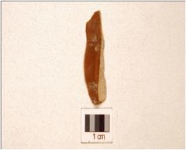 | Description / विवरण | A Blade made on chert, prepared platform, prominent bulb on ventral and use wear marks along the cutting edge. |