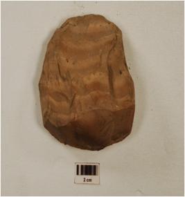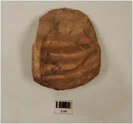 | Description / विवरण | A chert raw material with flake scars and smooth surface. |