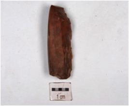 | Description / विवरण | A fluted core of chert having flake scars on the surface. |