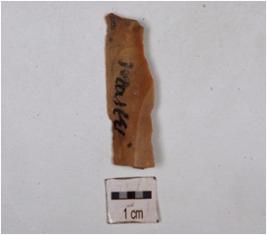 | Description / विवरण | Fragment of a parallel sided blade with a ridge on the dorsal and use-wear marks along the cutting edges and triangular cross-section. |