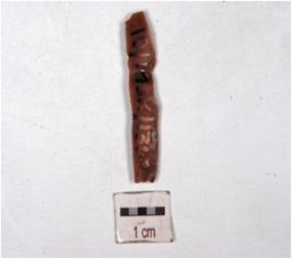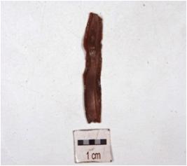 | Description / विवरण | A parallel sided blade of chert with use wear marks along the cutting edges, prepared platform and diffused bulb on the ventral. |