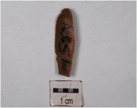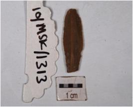| Description / विवरण | A parallel sided blade of chert with a mid-ridge on the dorsal and use-wear marks along the cutting edges, prepared platform and diffused bulb on the ventral. |