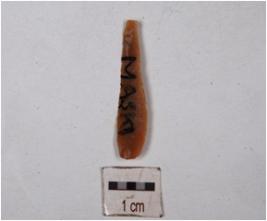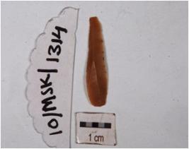 | Description / विवरण | A blade of chert with use-wear marks along the cutting edges. |