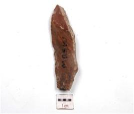 | Description / विवरण | A flake made on chert, with ridge on surface, and uneven shaped. |