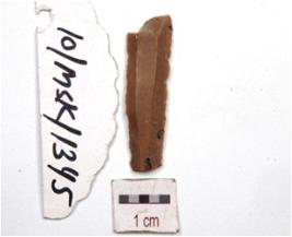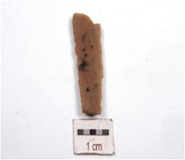 | Description / विवरण | A fragment of blade made on chert with ridge on dorsal and use wear marks on the cutting edges. |