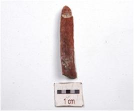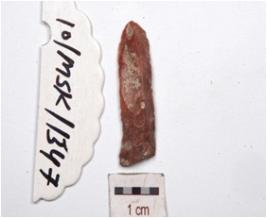 | Description / विवरण | A fragment of blade, with ridge on dorsal and use wear marks on the cutting edges. |