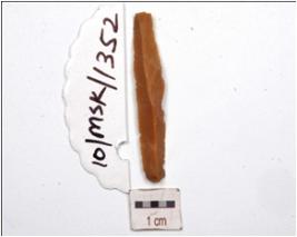 | Description / विवरण | A blade made on chert with ridge on dorsal prominent bulb on ventral and use wear marks on the cutting edges. |