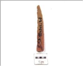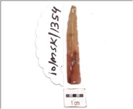| Description / विवरण | A blade made on chert with ridge on dorsal with use wear marks on the cutting edges. |