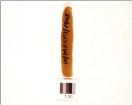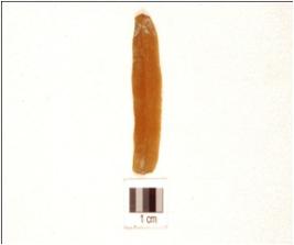| Description / विवरण | A chert blade, diffused bulb on the ventral ridge dorsal, prepared platform, distal end intact, partly retouches on the cutting edges. |