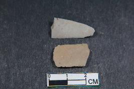 | Description / विवरण | Fragment of a blades with two dorsal ridges having smooth surface and shorter blade has Length- 2.2 cm, Breadth- 1.3 cm |