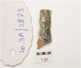 | Description / विवरण | End struck flake made on chert, triangular cross-section, prominent bulb on ventral surface and flake scars on dorsal surface. |