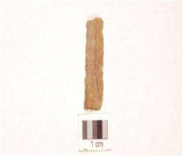 | Description / विवरण | A parallel backed sided blade made on chert, ridge on dorsal, use marks on along working edge, and taprazoidel cross-section |