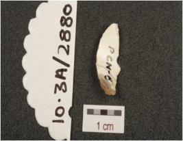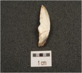 | Description / विवरण | End struck flake with flake scars on dorsal negative bulb on ventral and use marks along cutting edges. |