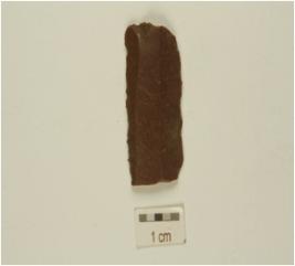 | Description / विवरण | A blade fragment made on chert with double ridge, use wear marks along the working edges and trapezoidal cross section. |