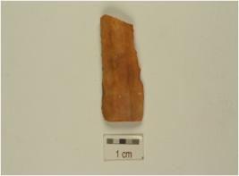 | Description / विवरण | A blade fragment made on chert with double ridge, trapezoidal cross section, use wear marks along the working edges. |