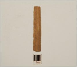 | Description / विवरण | A blade made on chert, prepared platform an proximal end, double ridge on dorsal side and use marks on working edges. |