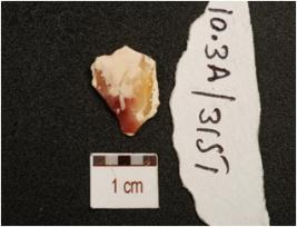 | Description / विवरण | End struck chalcedony flake, prominent bulb on ventral. |