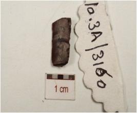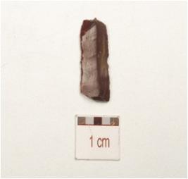| Description / विवरण | Fragment of chert blade with wear-marks along cutting edges, a prominent ridge on dorsal surface and triangular cross-section. |