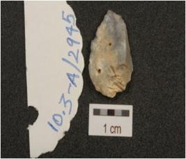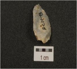 | Description / विवरण | End struck flake made on chert, chipped off dorsal and prominent bulb on ventral. |