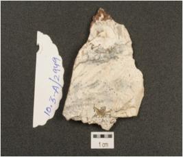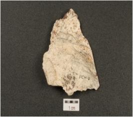 | Description / विवरण | End flake made on chert, flake scars on dorsal and prominent bulb on ventral. |