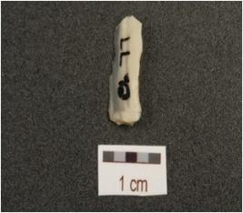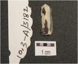 | Description / विवरण | Fragment of blade made on chalcedony with mid ridge on dorsal, use marks along cutting edge and triangular in cross-section. |