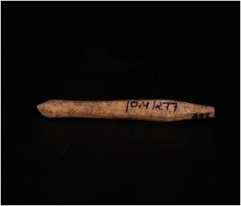 | Description / विवरण | Bone point. Long narrow object both points are partly broken circular-cross section. Well polished object. |
