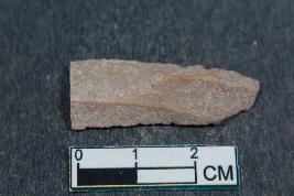 | Description / विवरण | Fragment of a blade with two dorsal ridges having smooth surface. |