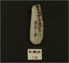 | Description / विवरण | A blade made on agate prominent bulb on ventral side and midridge on dorsal side irregular retouching marks on edges. |