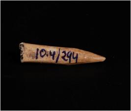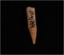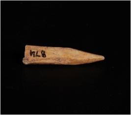 | Description / विवरण | Bone point, light browin in colour. One point is pointed and other one end is completely damaged. Circular cross-section well polished object, uneven and smooth surface. |