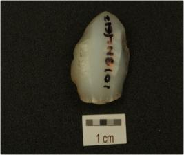 | Description / विवरण | A fluted core made on chalcedony blade scars on surface. |