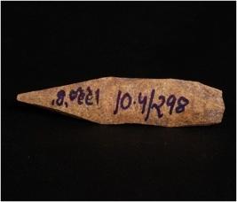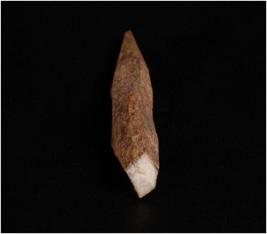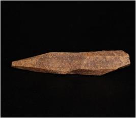 | Description / विवरण | Handmade bone point, dark brown in colour. Uneven and rough surface. Similar to point but it has only one end pointed other end has thicker. Circular cross-section. |
